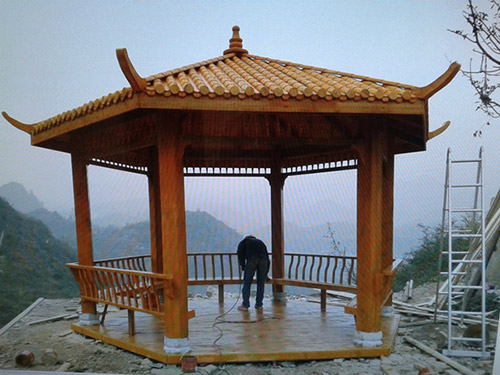 防腐木涼亭,是指用防腐木組建而成的涼亭。所使用的防腐木是經過特殊防腐工藝處理后的木材,具有防腐爛、防白蟻、防真菌的功效。故此類涼亭穩定性強、使用期限長、性價比高。
